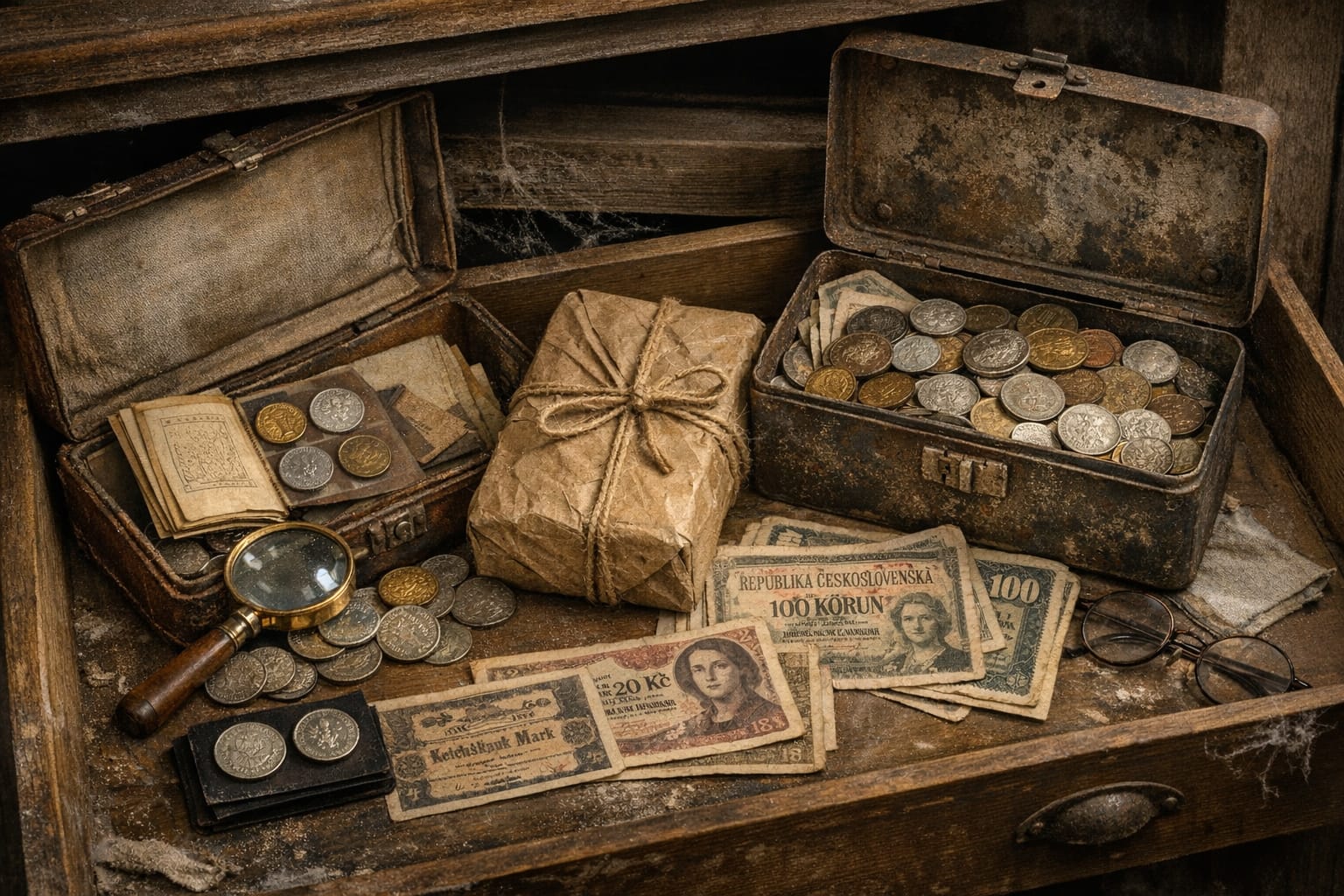 Starý kufr skrytý za trámy, zaprášená škatule na dně skříně nebo pečlivě zabalený balíček ukrytý v šuplíku prarodičů. Mnoho Čechů při vyřizování pozůstalosti nebo úklidu rodinné půdy narazí na něco, co na první pohled může vypadat jako nepotřebný harampádí — ale ve skutečnosti jde o skutečný numismatický poklad. Sbírky historických mincí a bankovek totiž mohou mít překvapivě vysokou hodnotu, a to nejen sentimentální.